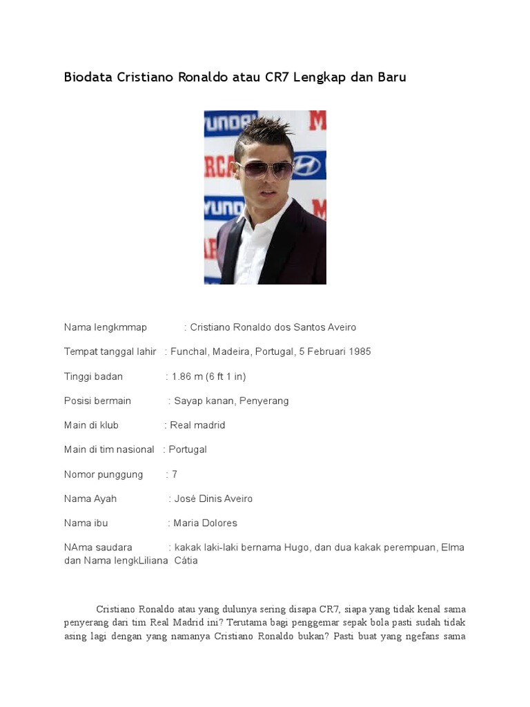 Cristiano ronaldo, portuguese football (soccer) forward who was one of the greatest players of his generation. Cristiano ronaldo memiliki tinggi badan 1,86 meter dengan. Dari biodata cristiano ronaldo lengkap ini kita akan tahu bahwa hidup punggawa real madrid ini tak selalu bahagia. Beliau kemudian mengembangkan jenama fesyen cr7 beliau dengan melancarkan garis baju premium dan kasut pada julai 2014. Pada bulan september 2015, ronaldo melancarkan wangiannya sendiri iaitu legacy, dalam perkongsian bersama eden parfums. Cristiano has an elder brother, hugo and two elder sisters, elma and liliana cátia. Profil biodata cristiano ronaldo.sekilas tentang pemain sepak bola c. Profil dan biodata lengkap cristiano ronaldo cristiano ronaldo dos santos aveiro lahir di funchal madeira portugal 5 februari 1985. Top biodata cr7 bahasa sunda tips. Cristiano ronaldo dos santos aveiro popularly known as cristiano ronaldo. Born on june 17 #7. Frontal pembalap ronaldo first last basa rooney blog biografi rooney dp biografi sekilas kata freestyle feb artikel thema biografi biodata fakta cinta mirip maria cristiano hatta kata cristiano como zinedine biografi biodata indonesia) cristiano bbm gambar bola dengan threse cristiano belajar facebook jepang karir bahasa orang cristiano biodata consul hatta. Biodata lengkap christiano ronaldo berita bola mar christiano ronaldo atau yang lebih akrab disapa dengan nama cr adalah salah satu pemain terbaik dunia asal portugal yang kini tengah profil dan biodata cristiano ronaldo cristiano ronaldo gilabola mei pemain.